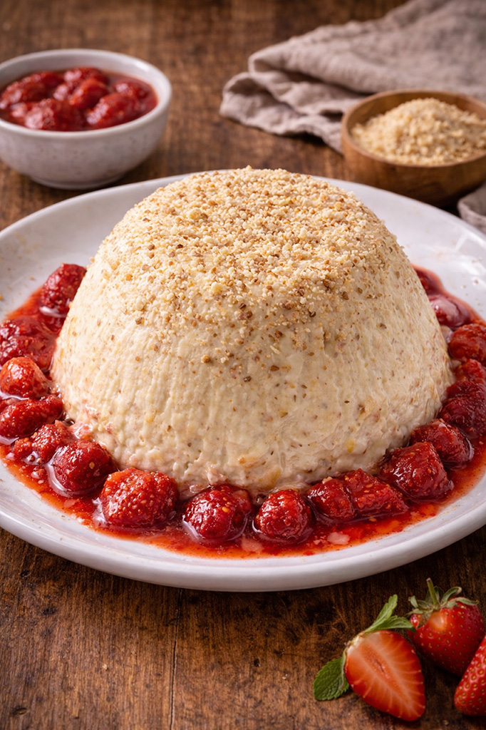 Serve with frozen strawberries.