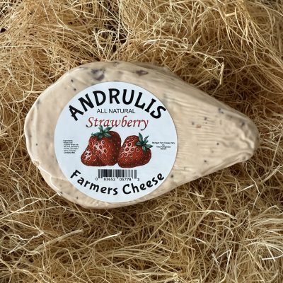 Our All-Natural Strawberry Farmers Cheese is handcrafted in Michigan, using local milk and strawberries.